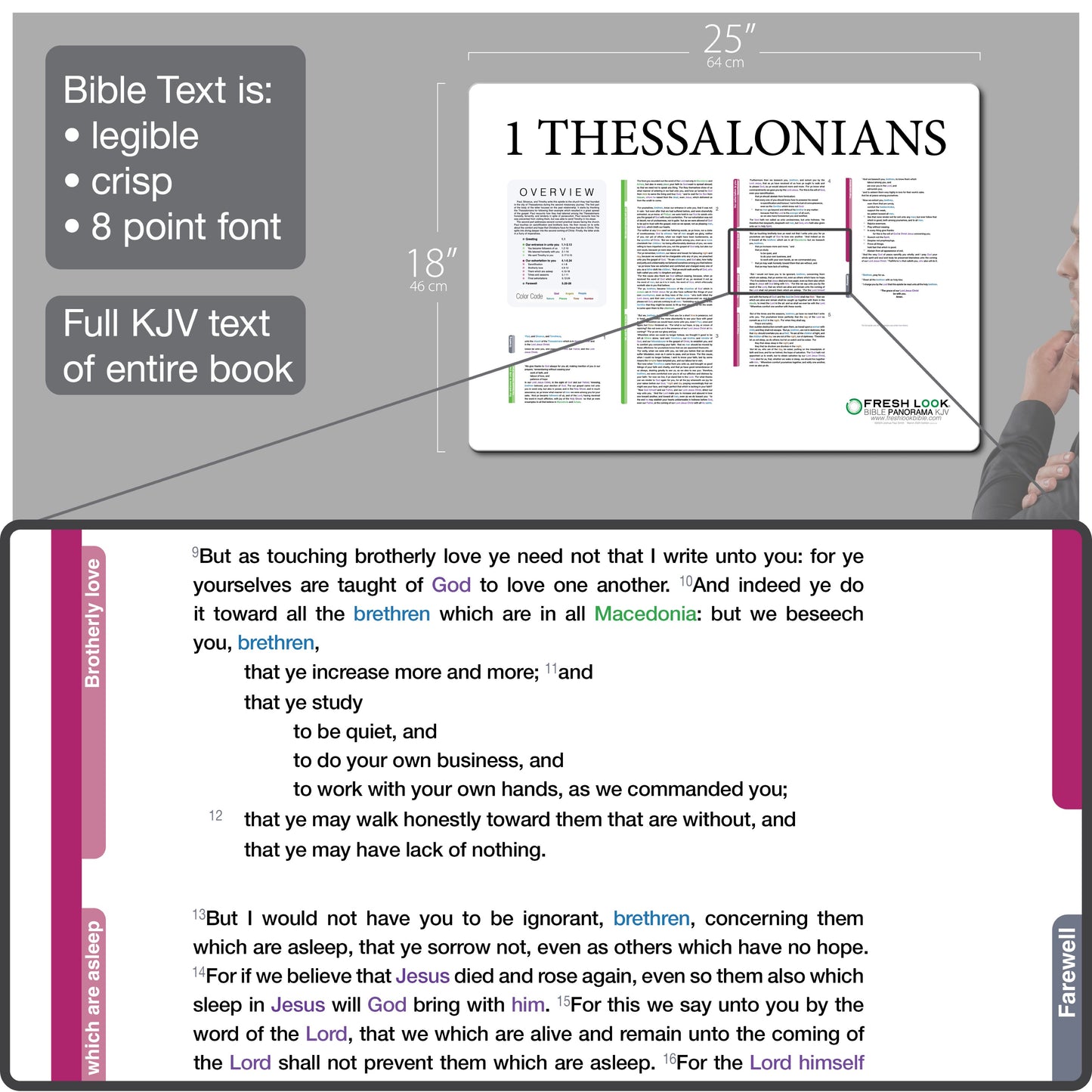 - A printed graphic of every word of the entire book of 1 Thessalonians (KJV) displayed beautifully in its natural context.