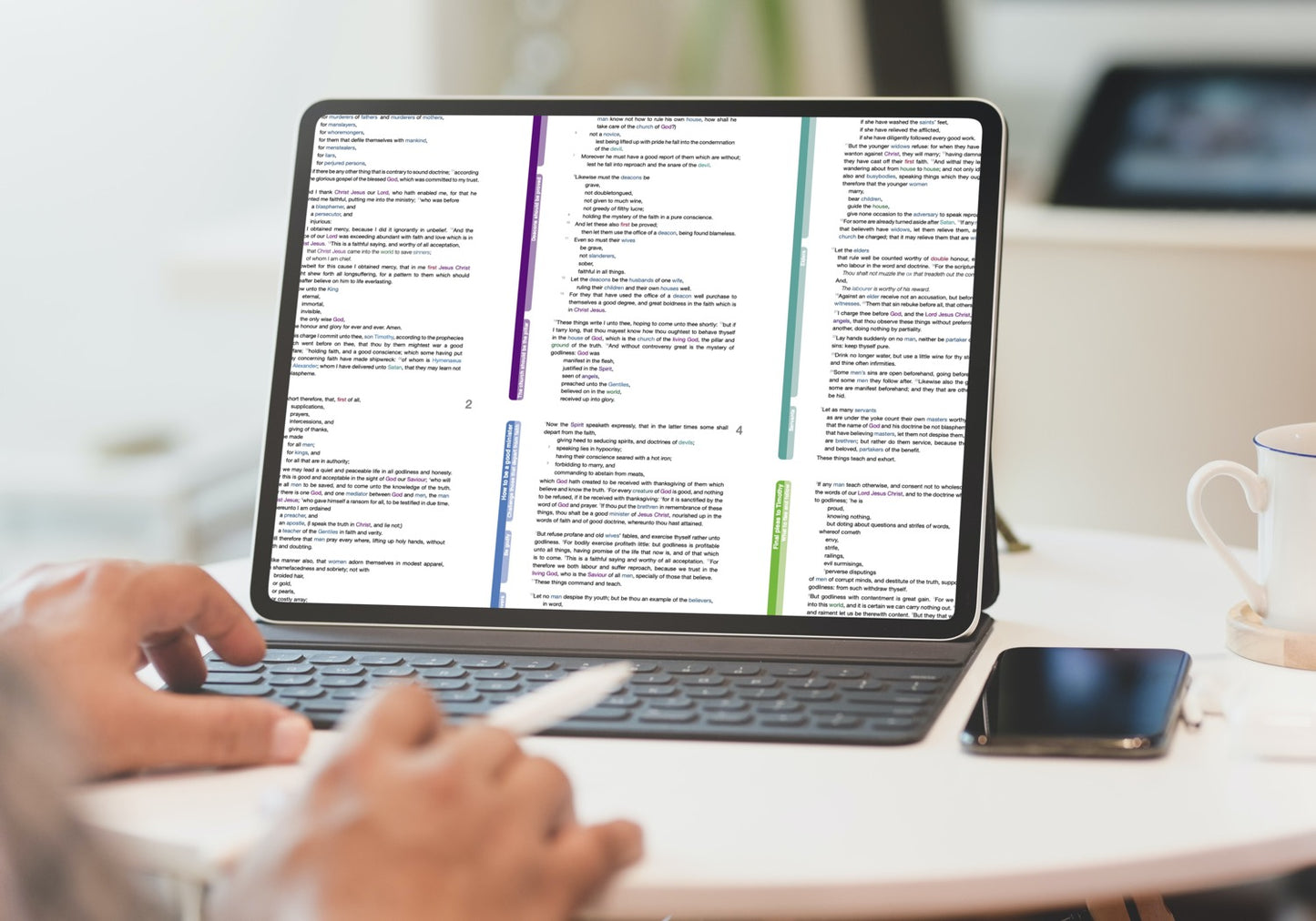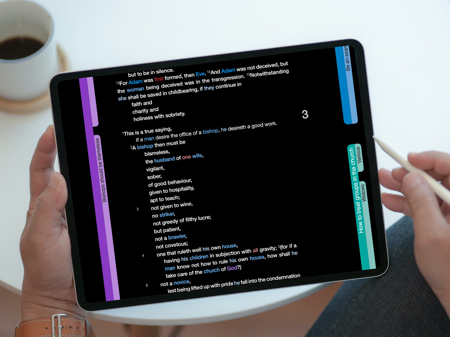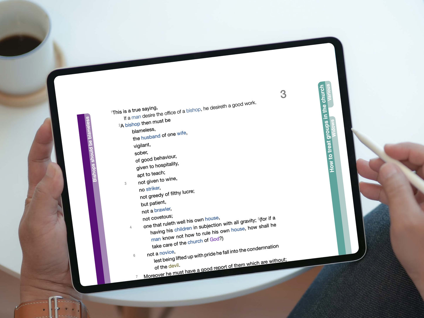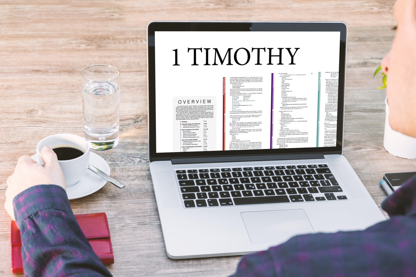 - A full resolution, interactive digital PDF document of every word of the entire book of 1 Timothy (KJV) displayed beautifully in its natural context.