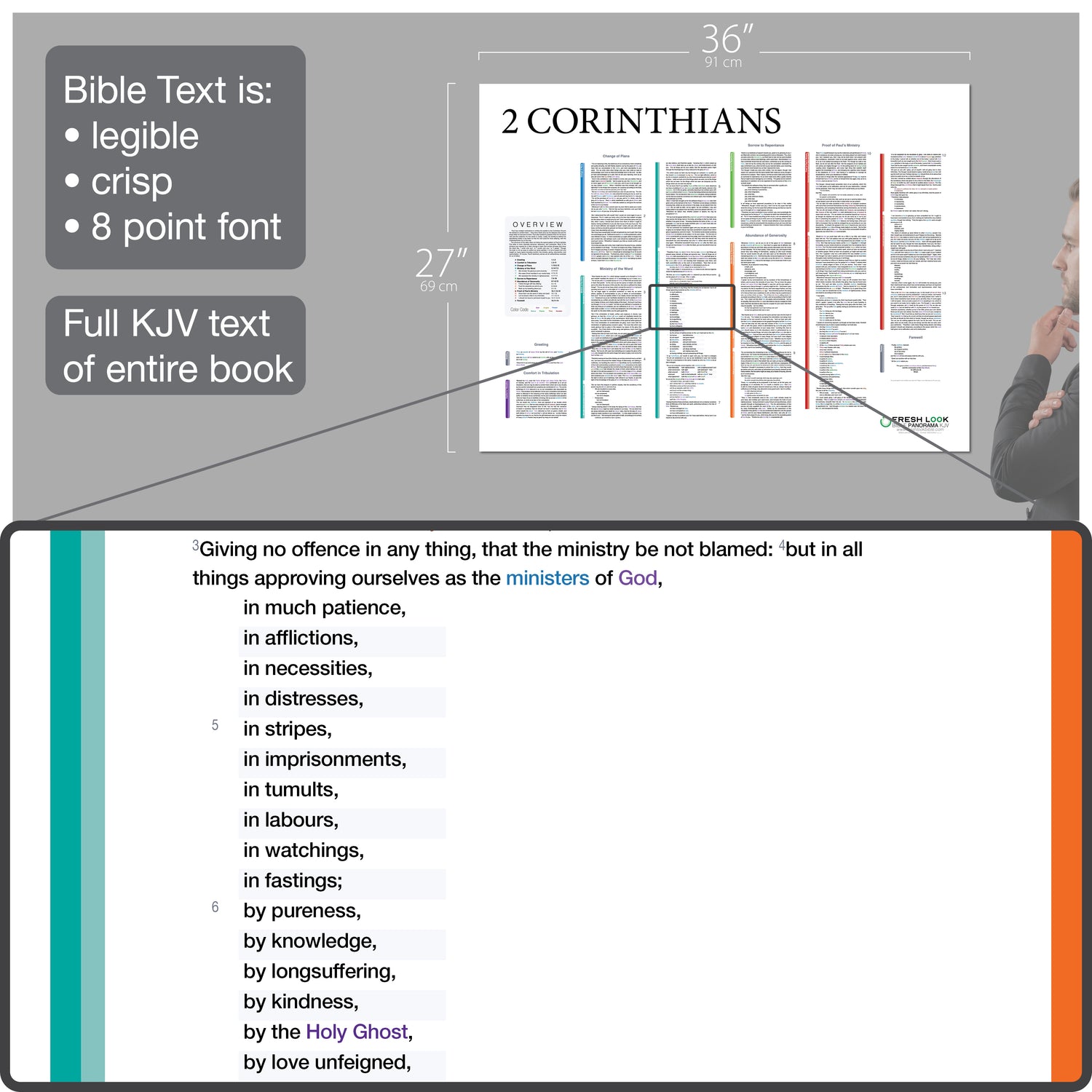 - A printed graphic of every word of the entire book of 2 Corinthians (KJV) displayed beautifully in its natural context.