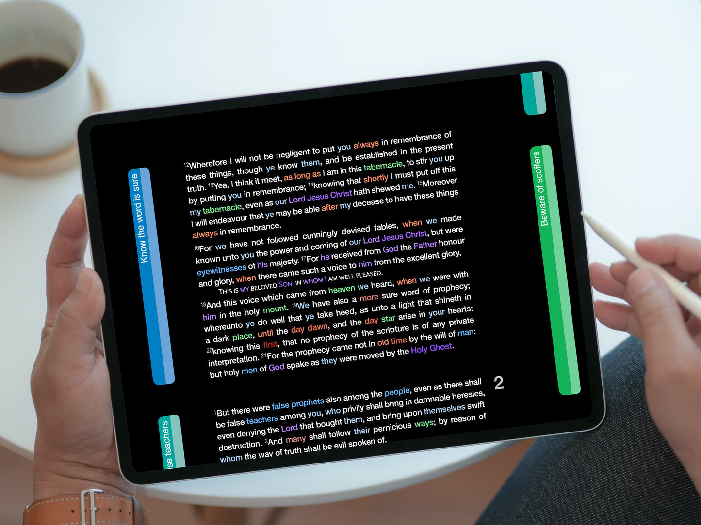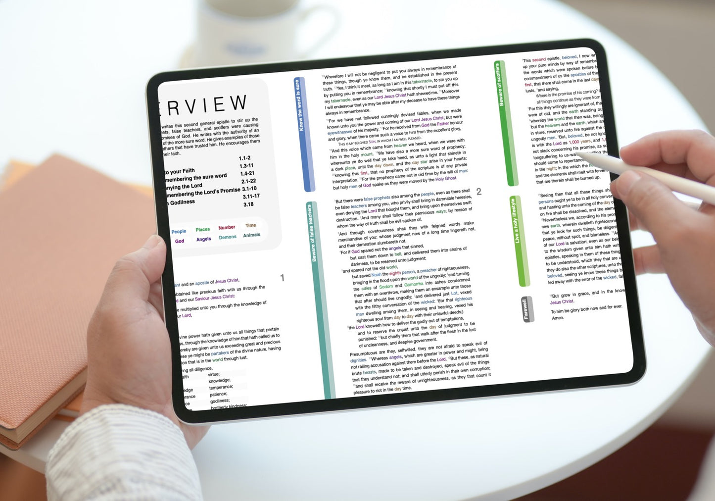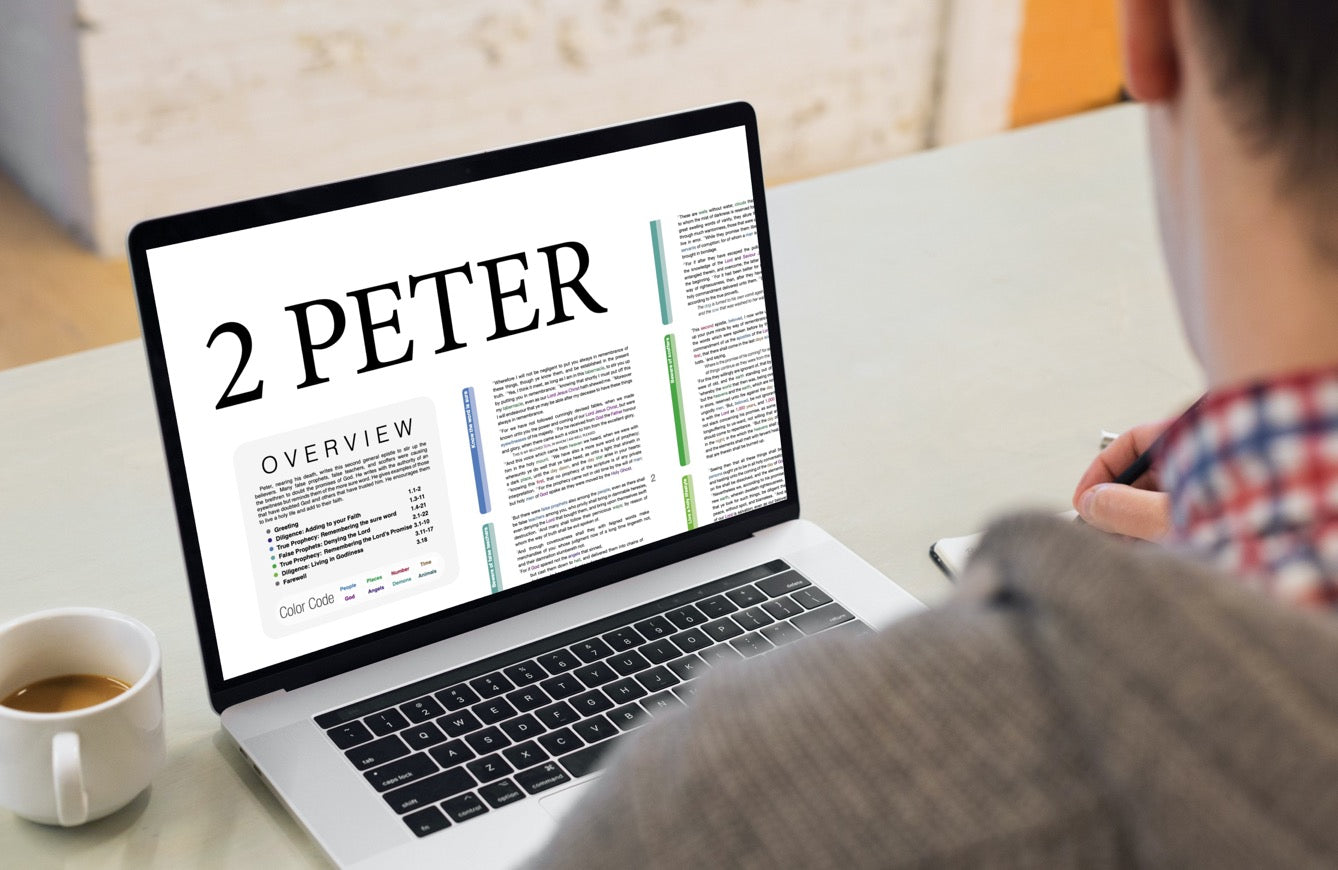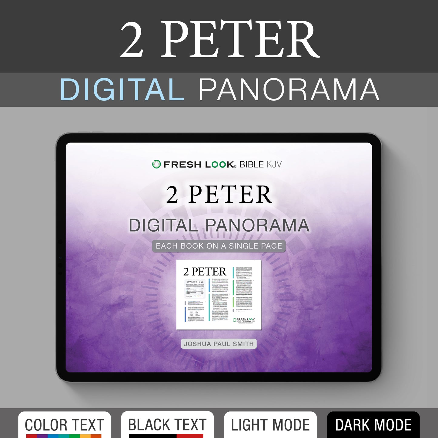 - A full resolution, interactive digital PDF document of every word of the entire book of 2 Peter (KJV) displayed beautifully in its natural context.