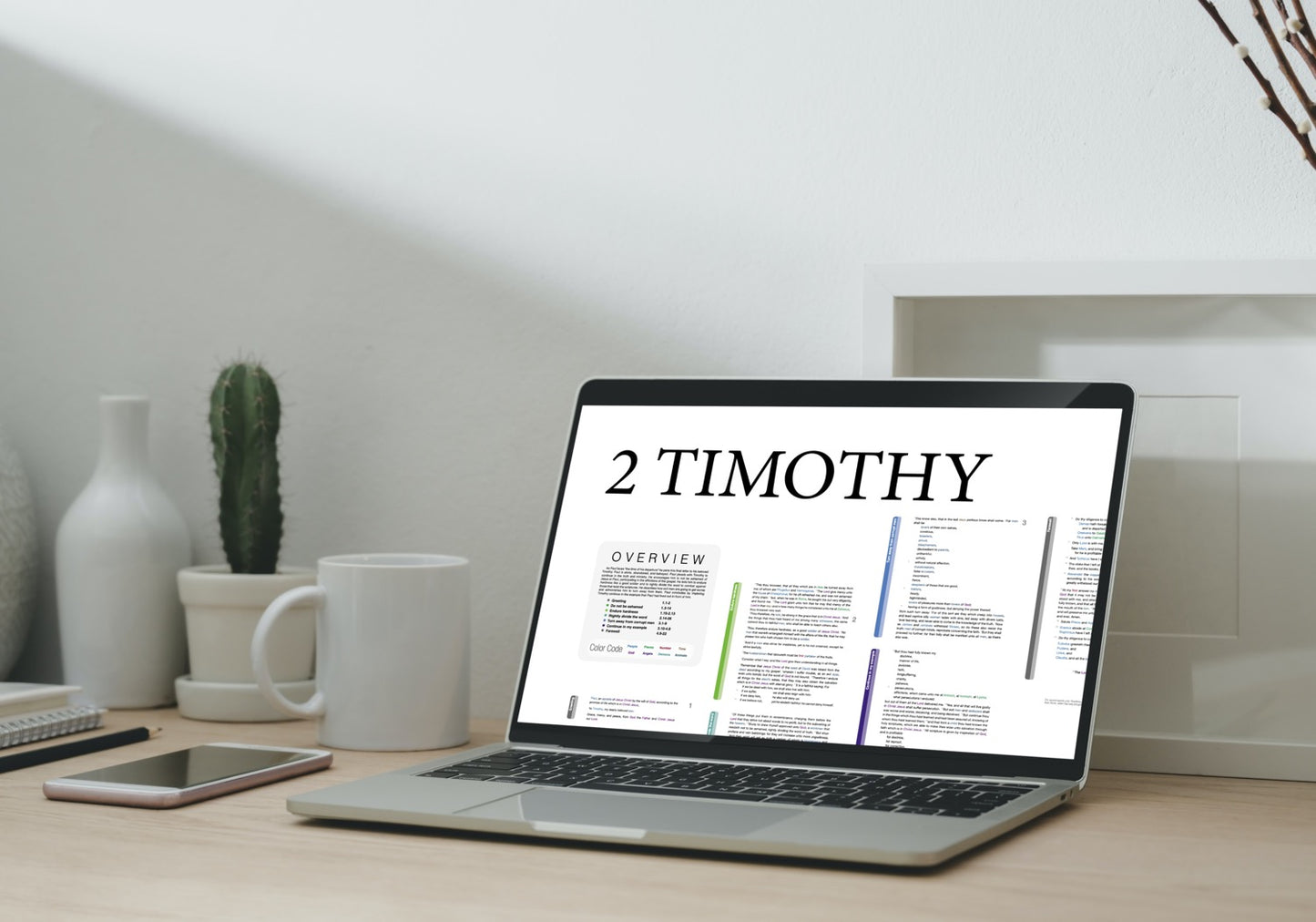 - A full resolution, interactive digital PDF document of every word of the entire book of 2 Timothy (KJV) displayed beautifully in its natural context.
