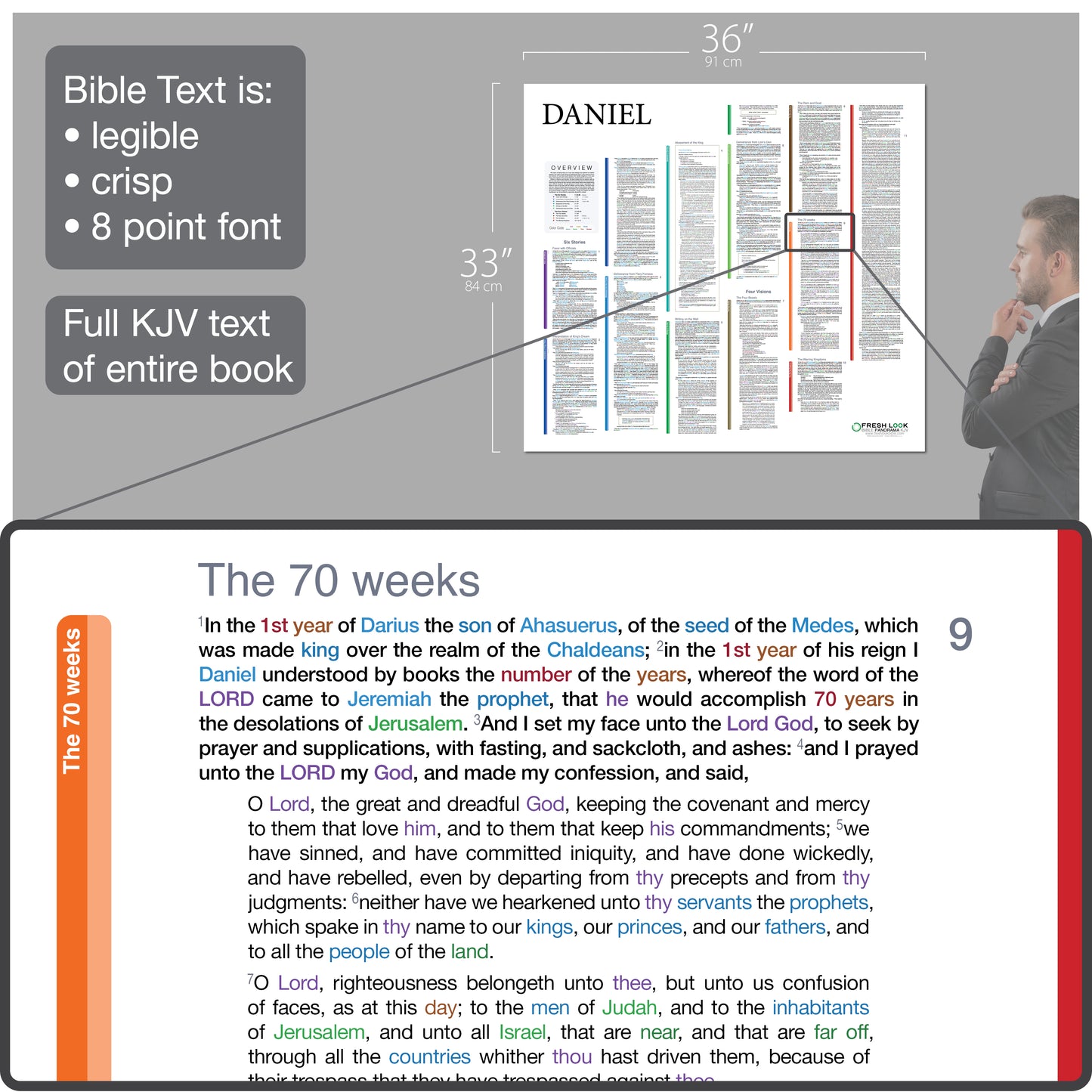- A printed graphic of every word of the entire book of Daniel (KJV) displayed beautifully in its natural context.
