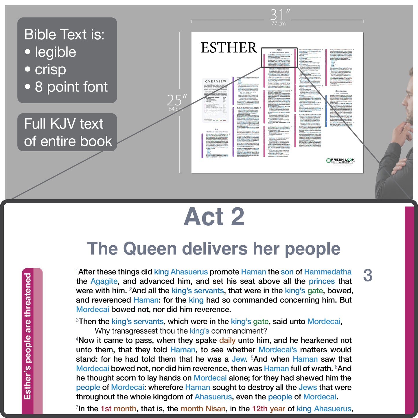 - A printed graphic of every word of the entire book of Esther (KJV) displayed beautifully in its natural context.