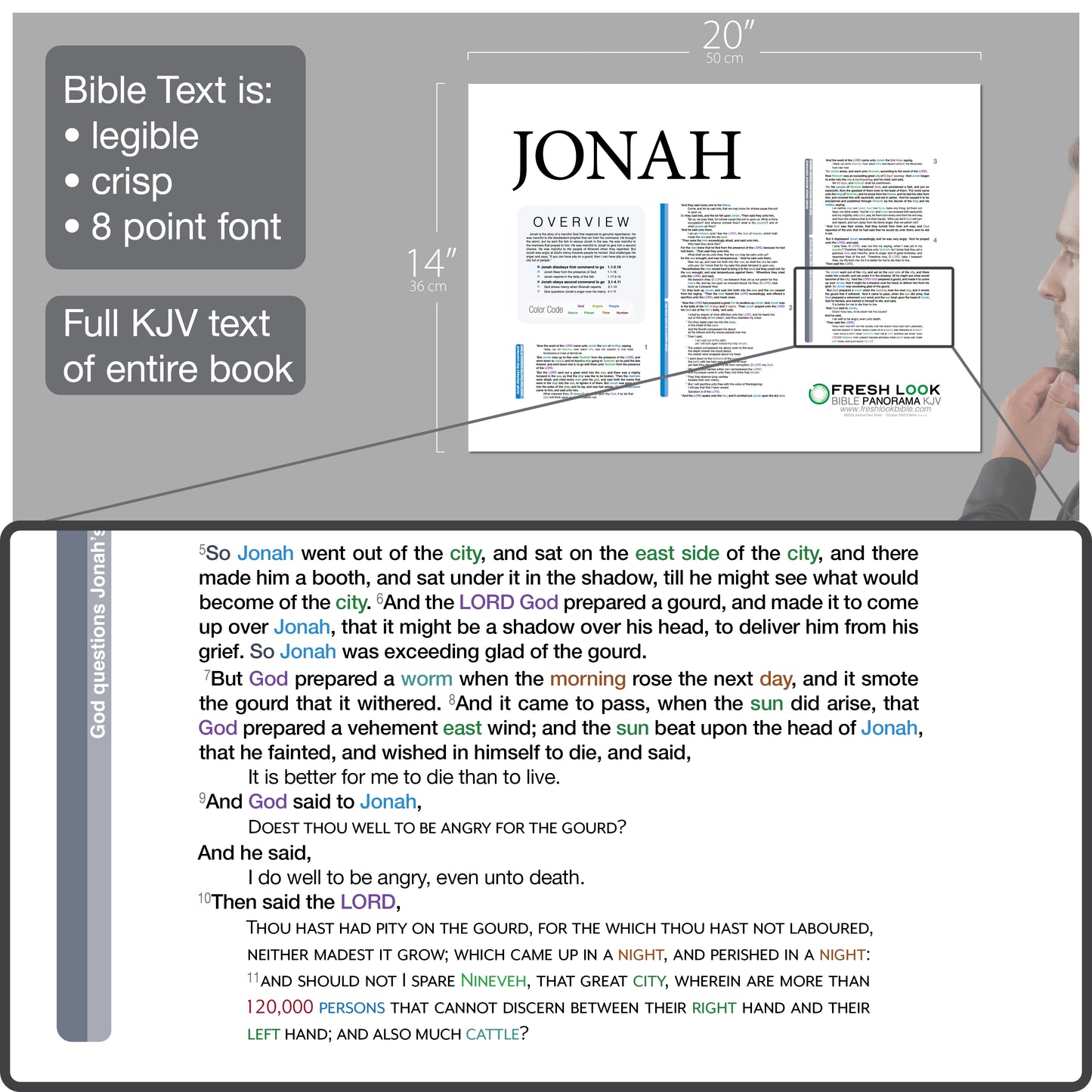 - A printed graphic of every word of the entire book of Jonah (KJV) displayed beautifully in its natural context.