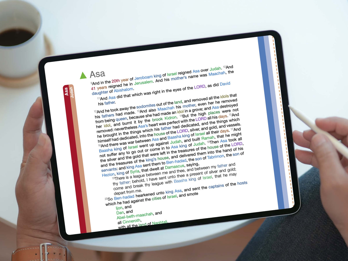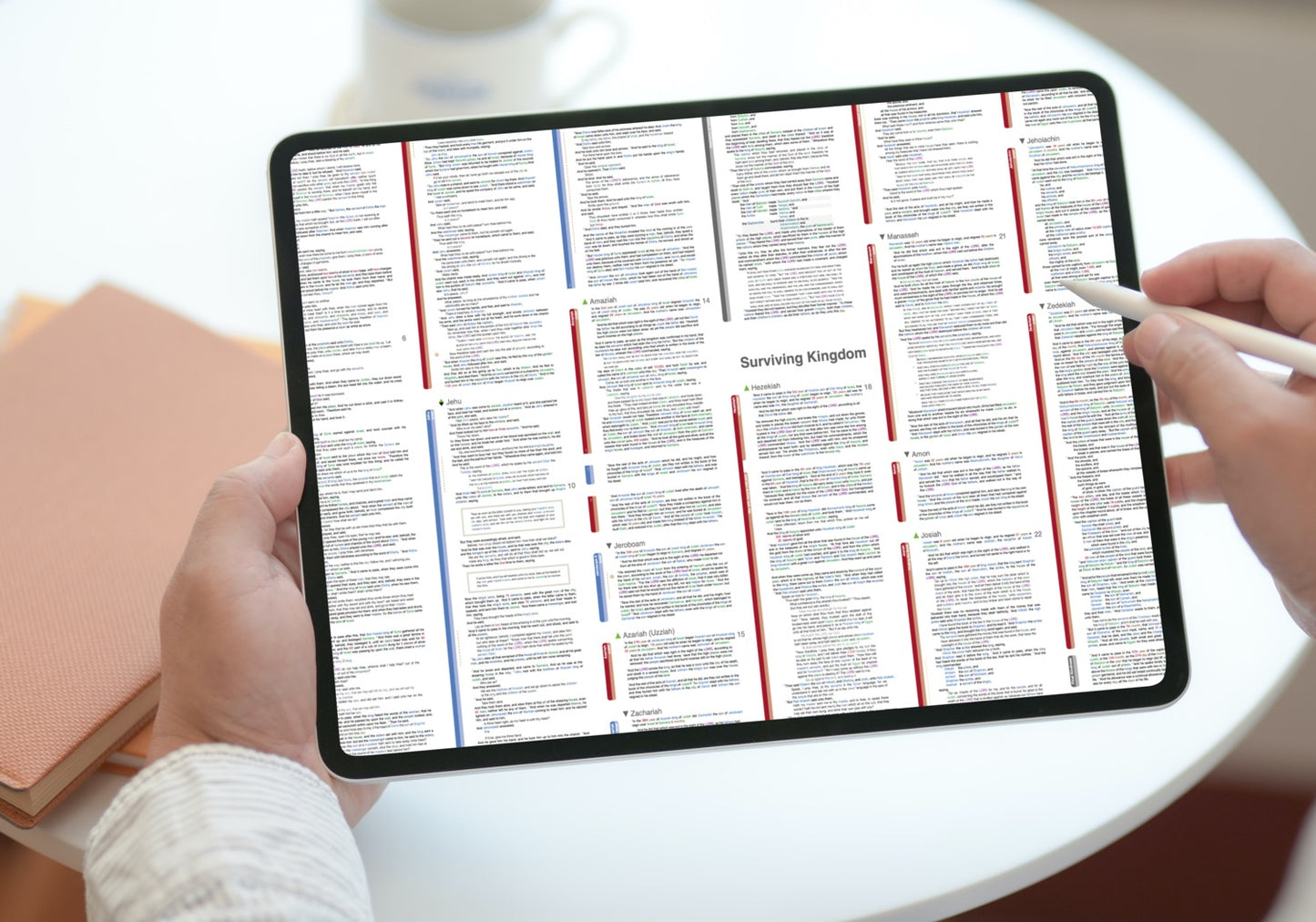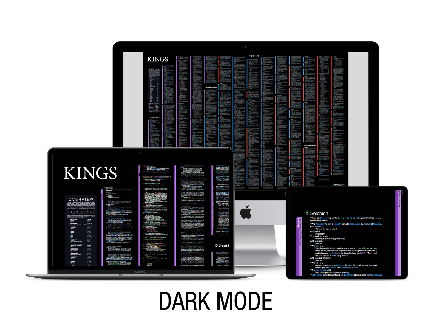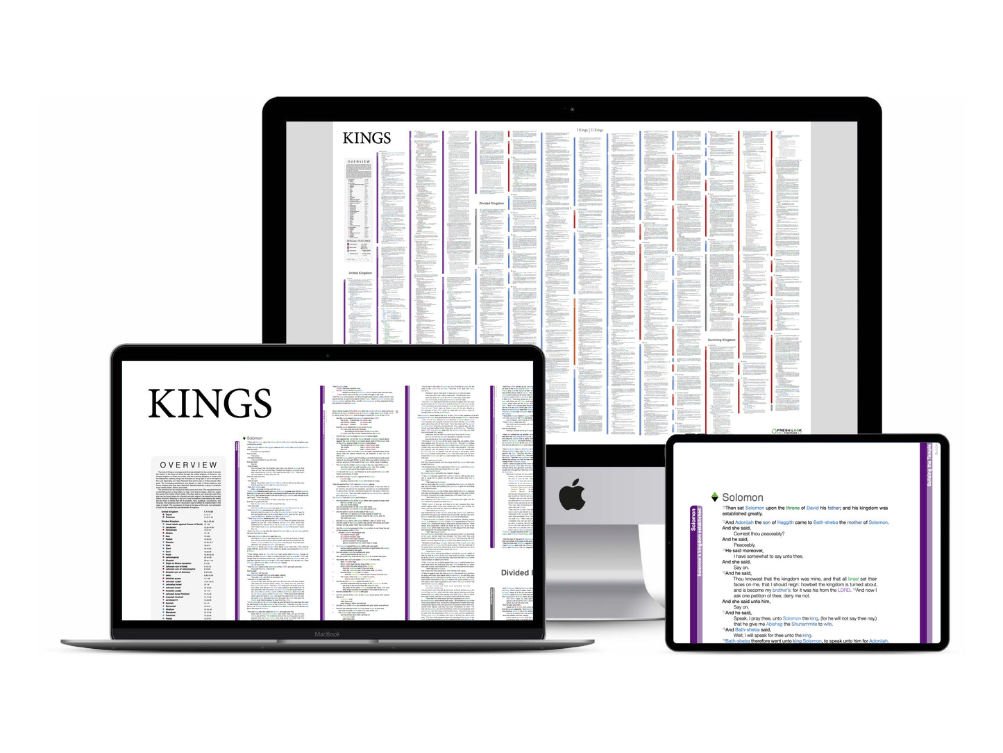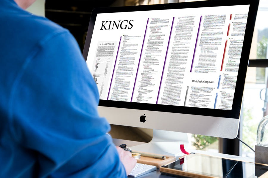 • A full resolution, interactive digital PDF document of every word of the entire book of 1st and 2nd Kings (KJV) displayed beautifully in its natural context.