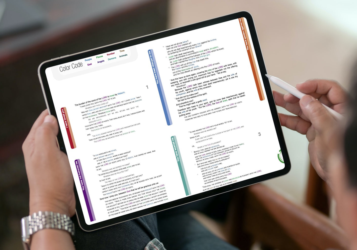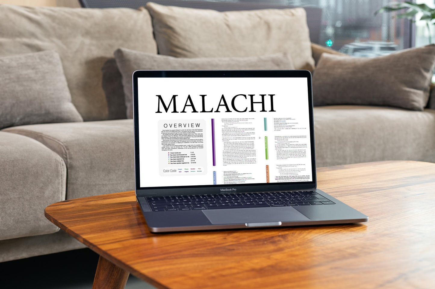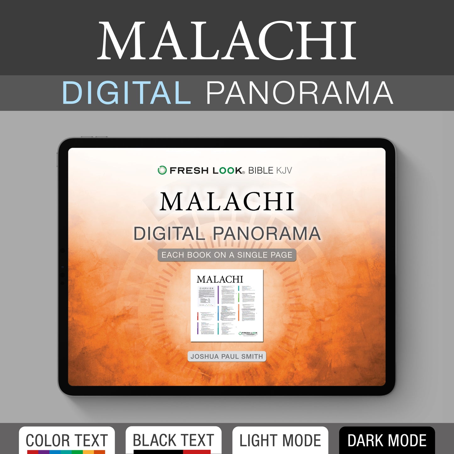 - A full resolution, interactive digital PDF document of every word of the entire book of Malachi (KJV) displayed beautifully in its natural context.