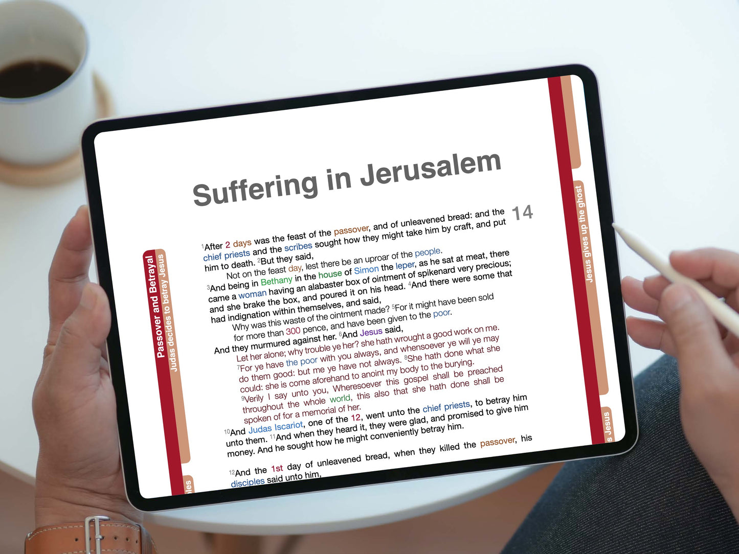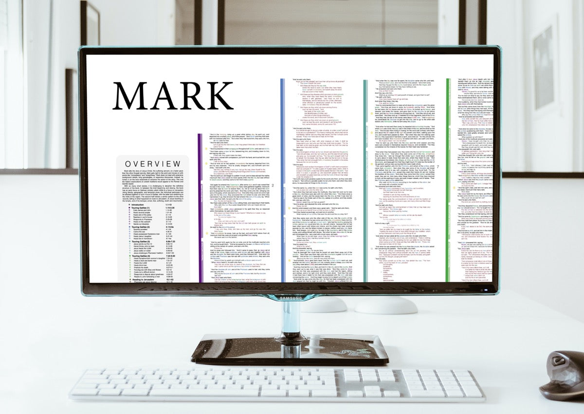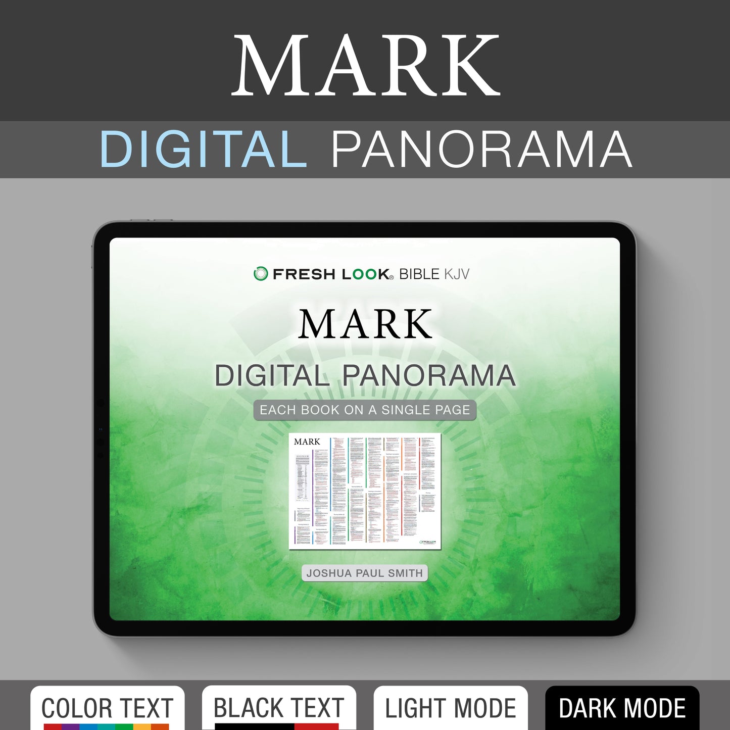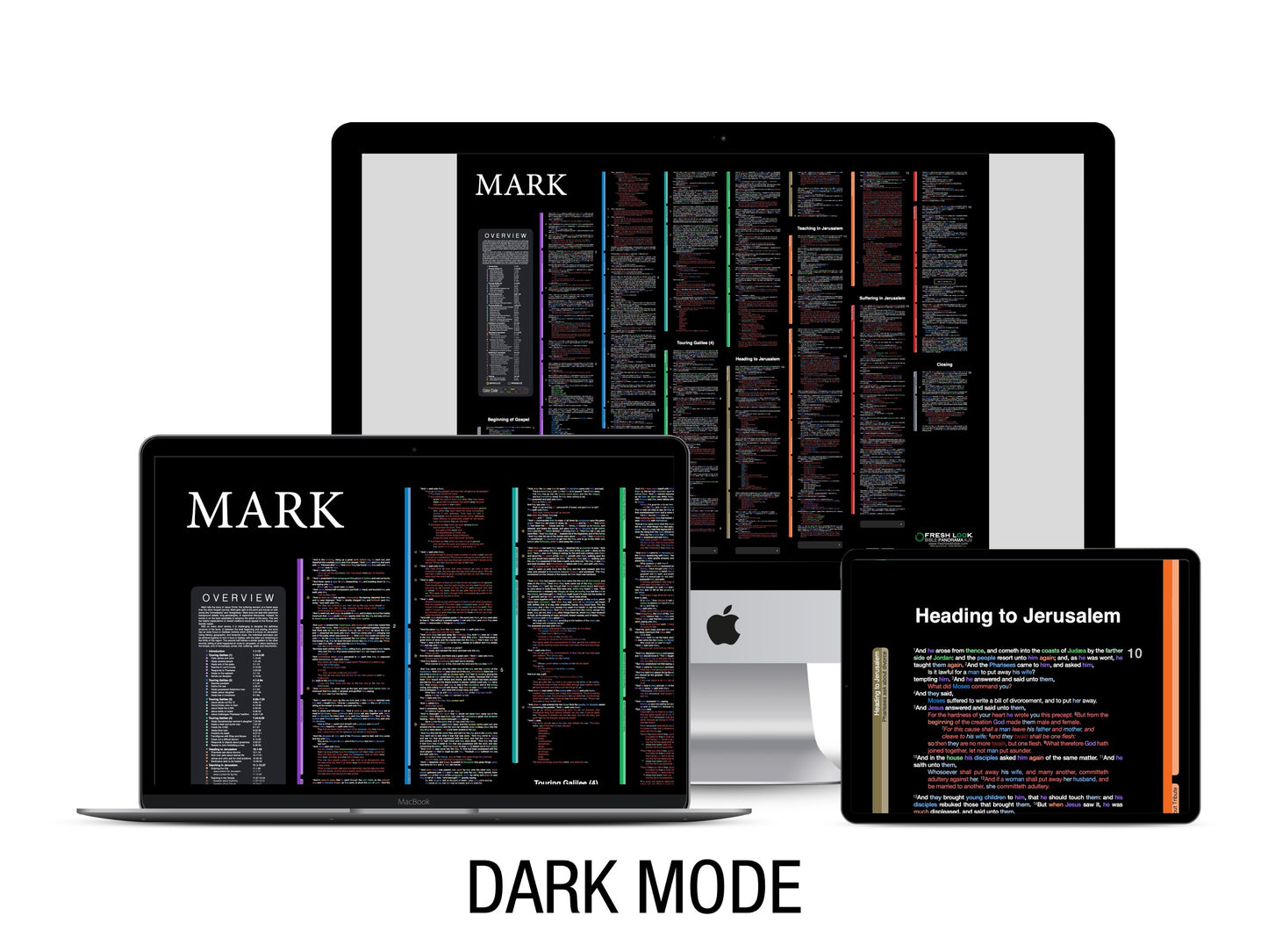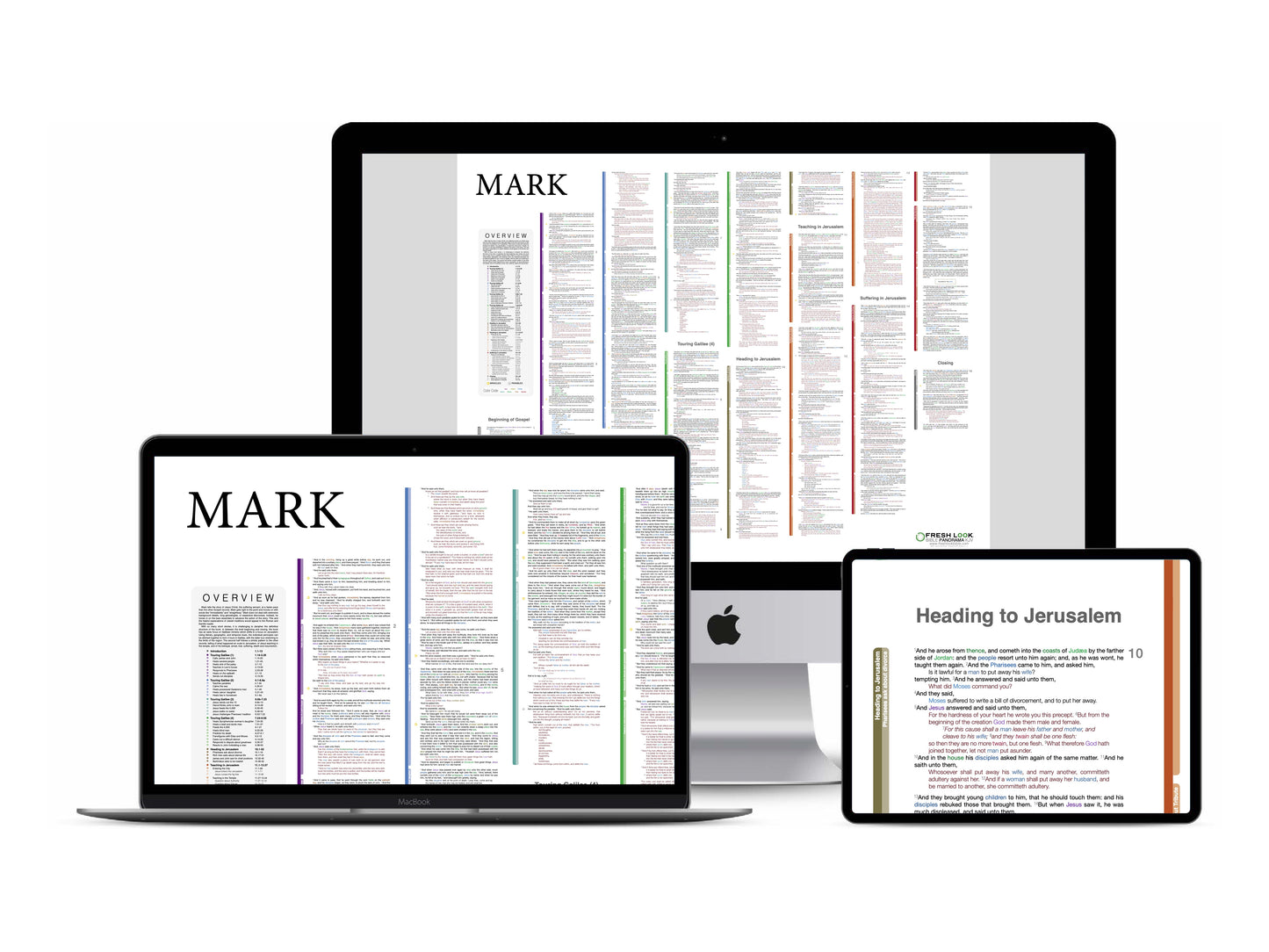 - A full resolution, interactive digital PDF document of every word of the entire book of Mark (KJV) displayed beautifully in its natural context.