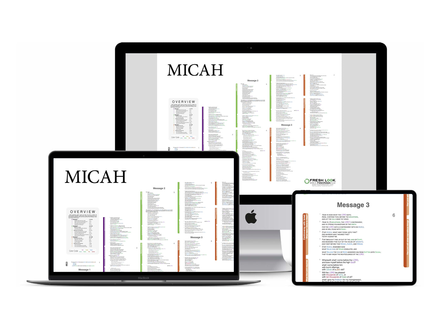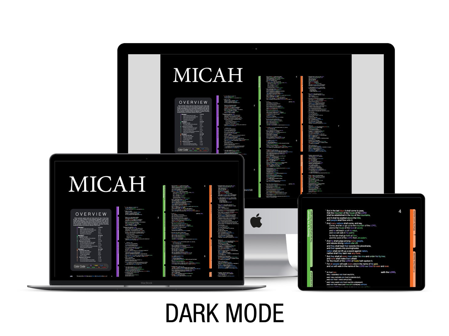 • A full resolution, interactive digital PDF document of every word of the entire book of Micah (KJV) displayed beautifully in its natural context.