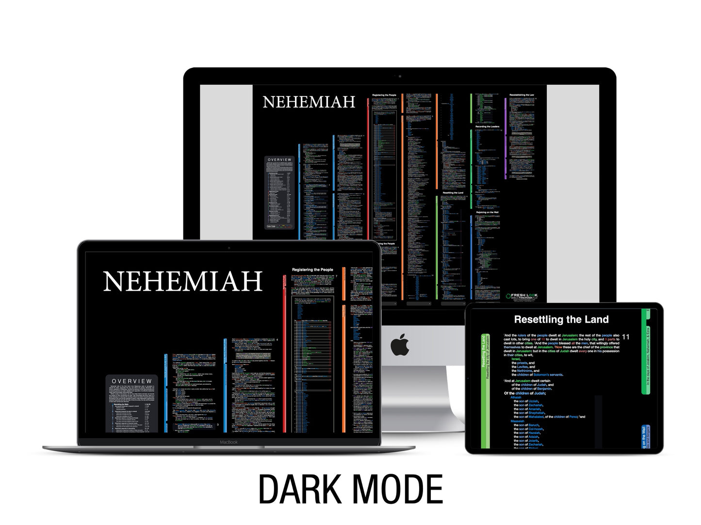 - A full resolution, interactive digital PDF document of every word of the entire book of Nehemiah (KJV) displayed beautifully in its natural context.