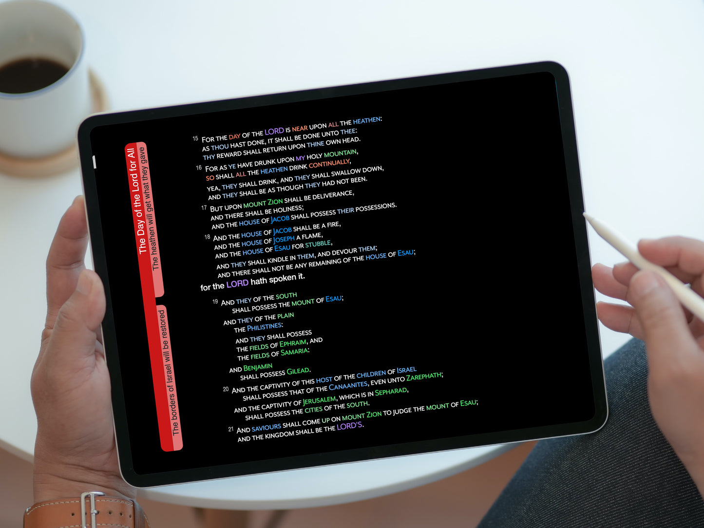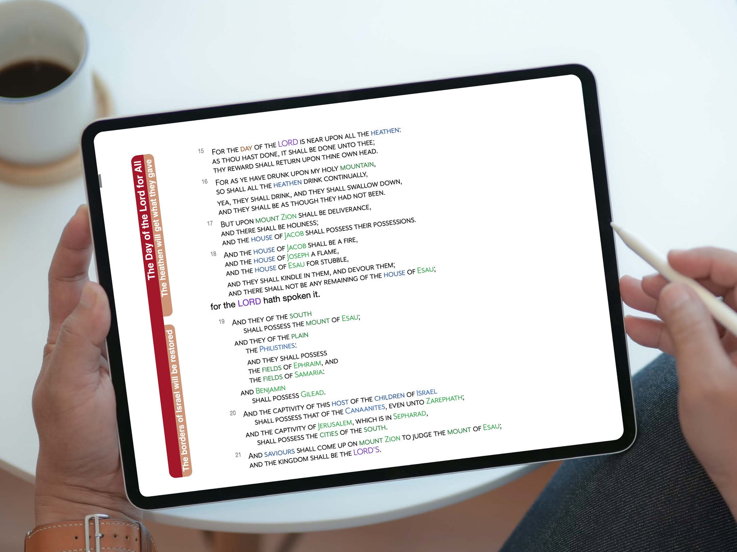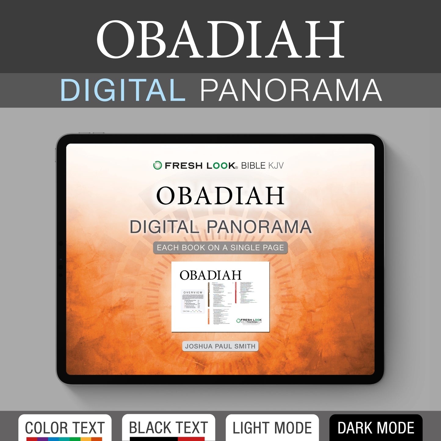 • A full resolution, interactive digital PDF document of every word of the entire book of Obadiah (KJV) displayed beautifully in its natural context.