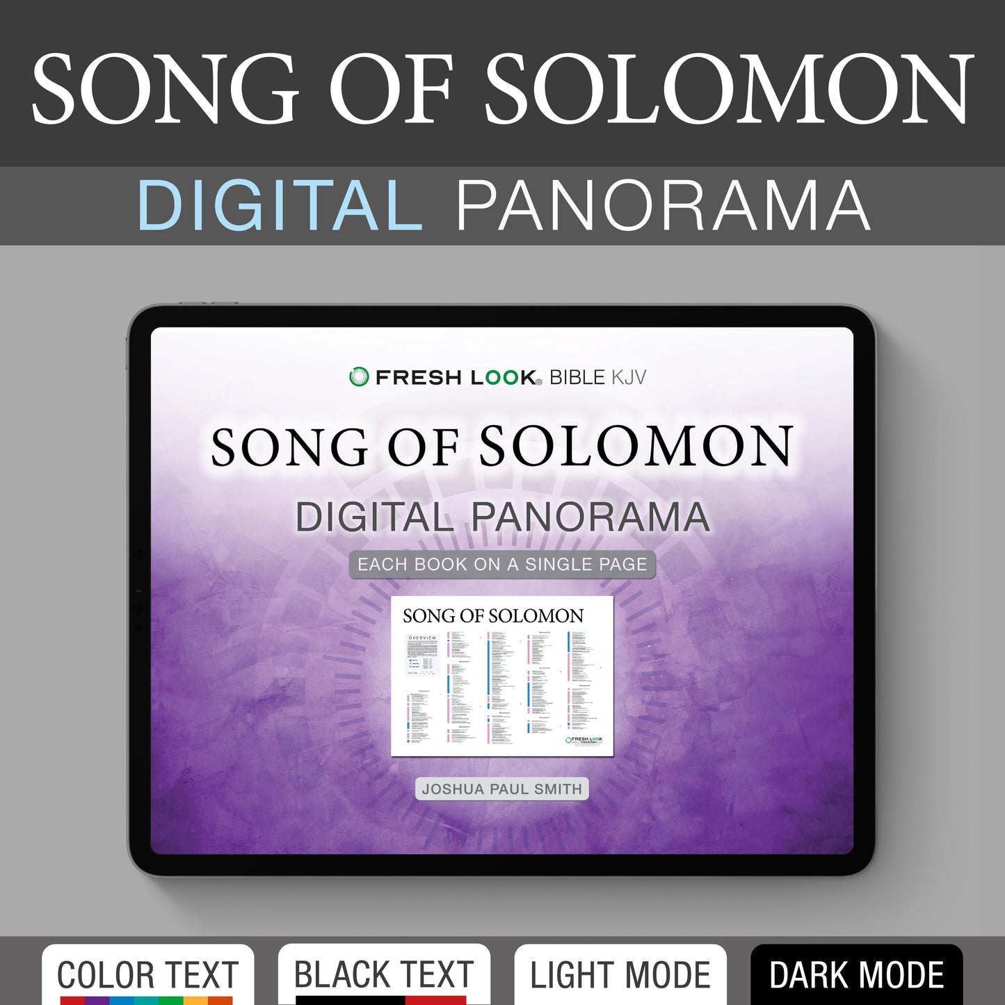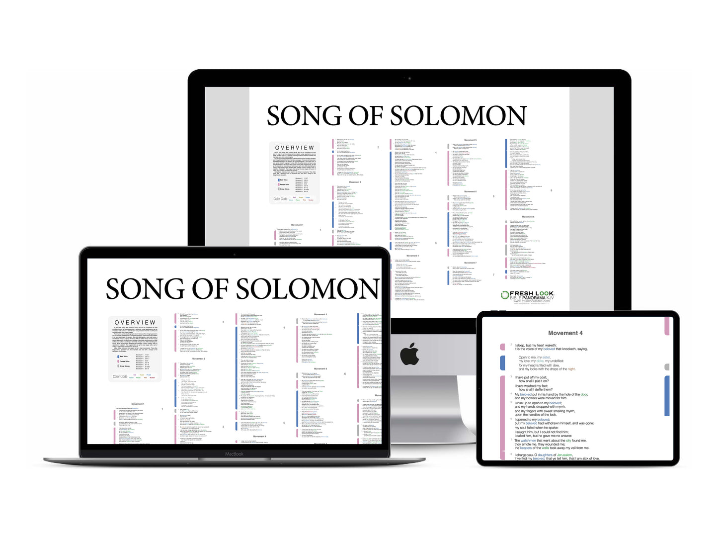 - A full resolution, interactive digital PDF document of every word of the entire book of Song of Solomon (KJV) displayed beautifully in its natural context.