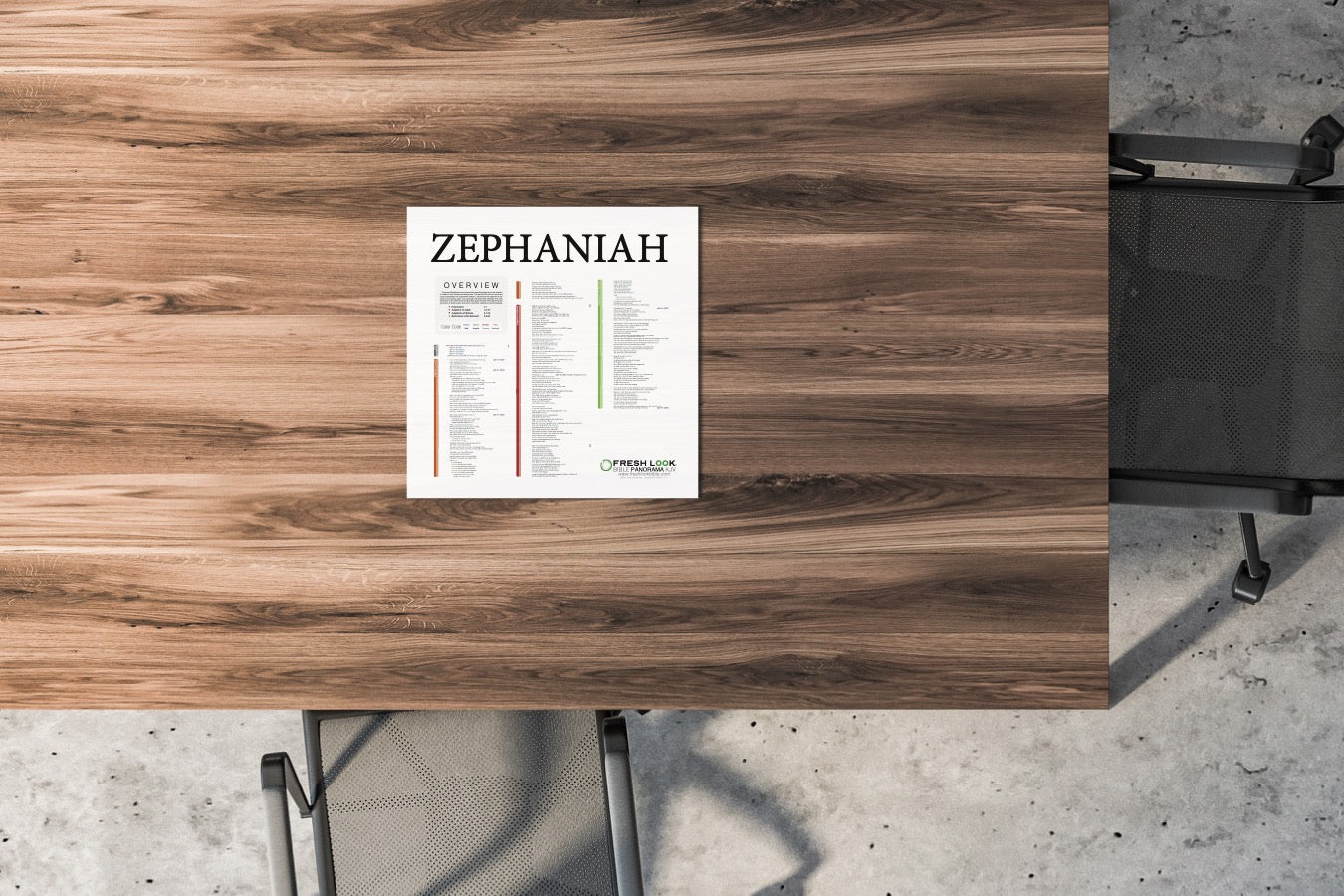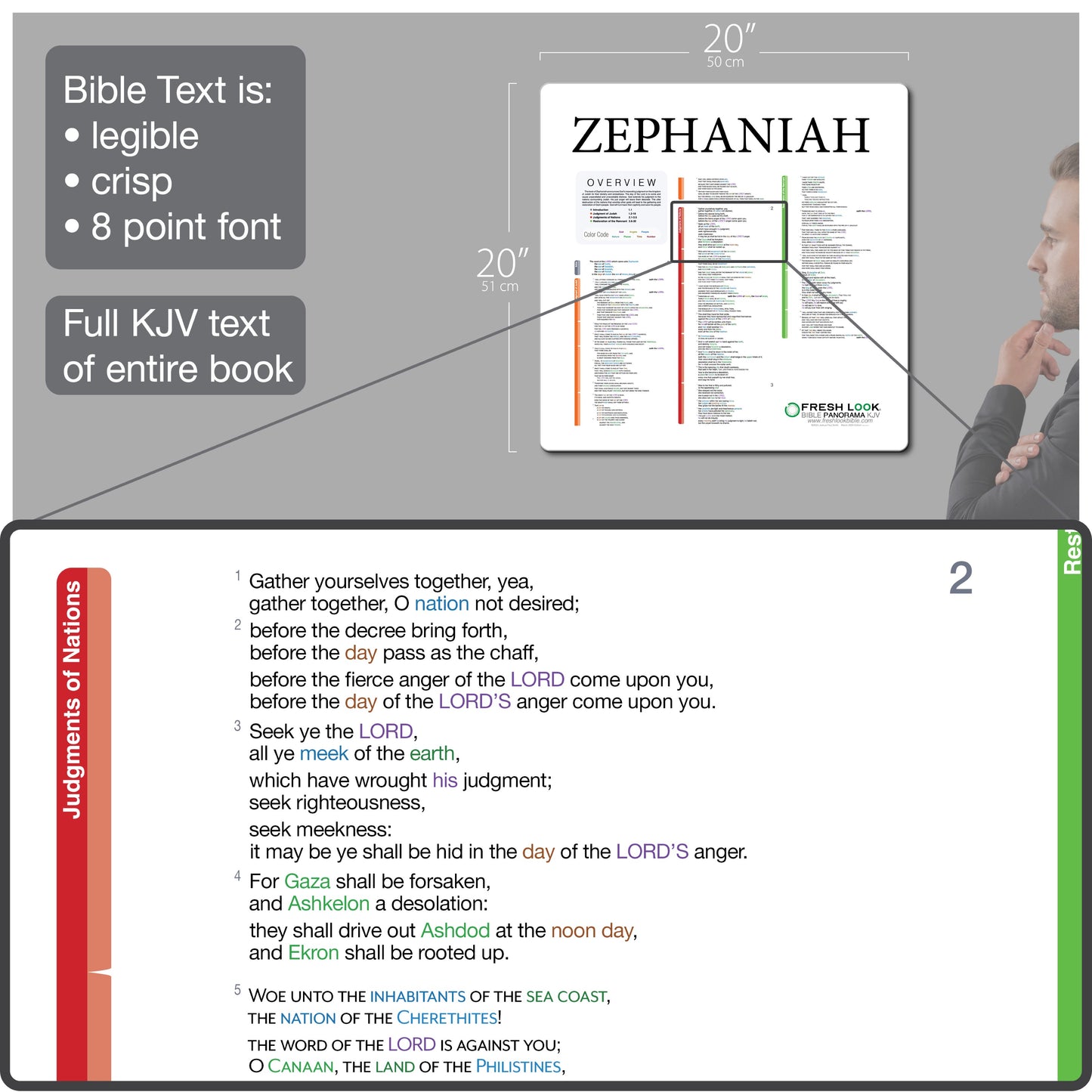 • A printed graphic of every word of the entire book of Zephaniah (KJV) displayed beautifully in its natural context.